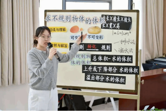第二个环节是职业场景模拟展示,翁一冉的《天地人》带我们领略文字与人文的奥秘,王惠彤的《求不规则物体的体积》带我们见证理科逻辑的魅力,教学不仅是一门科学,更是一门艺术。