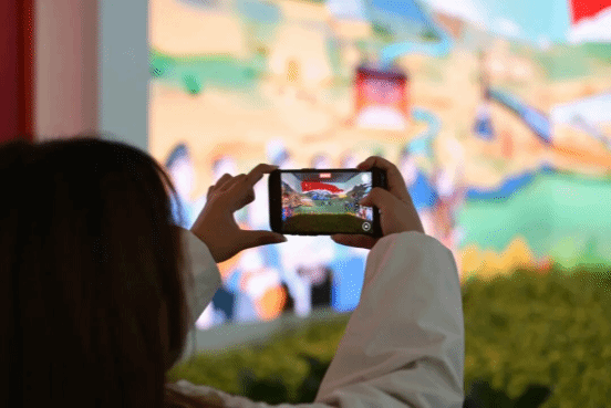 活动中,师生们循着历史脉络驻足参观。从自治区成立时的珍贵历史视频、十月拖拉机厂生产的第一台“跃进”牌拖拉机,到天山百货大楼的复原场景,老物件与旧影像勾起了大家对峥嵘岁月的追忆,深刻体会到老一辈建设者扎根边疆、艰苦奋斗的精神品格;从打赢脱贫攻坚战的新旧对比照片、柯柯牙生态治理卫星图,到果子沟大桥模型,鲜活的展品直观展现了新疆在经济发展、民生改善、生态文明建设等领域的历史性成就,让师生们真切感受到“中华民族共同体意识”在天山南北的生动实践。特别在中央代表团赠送的“中华同心尊”前,师生们驻足良久,细细品味尊体石榴造型所蕴含的 “各民族像石榴籽一样紧紧抱在一起” 的深刻寓意,进一步筑牢了民族团结的思想根基。