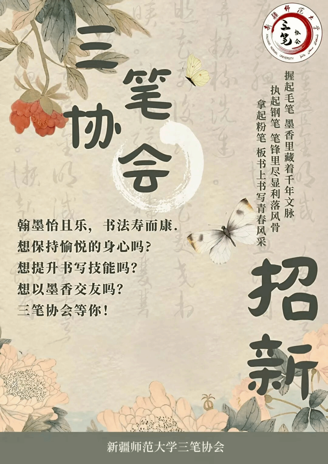 ,作为“十佳社团”之一,三笔协会自成立以来深耕汉字书写传承,融硬笔挺拔、软笔遒劲、粉笔灵动于教学实践,于笔墨间雕琢书写之美、涵养文化自信。设多类特色课程,精准匹配成员需求,搭建从基础到展演的全链条成长平台,是校园书写文化引领者,更是连接传统笔墨与师范生素养培育的坚实纽带。以笔为媒,让汉字之美浸润校园,让文化之根深植心间。
